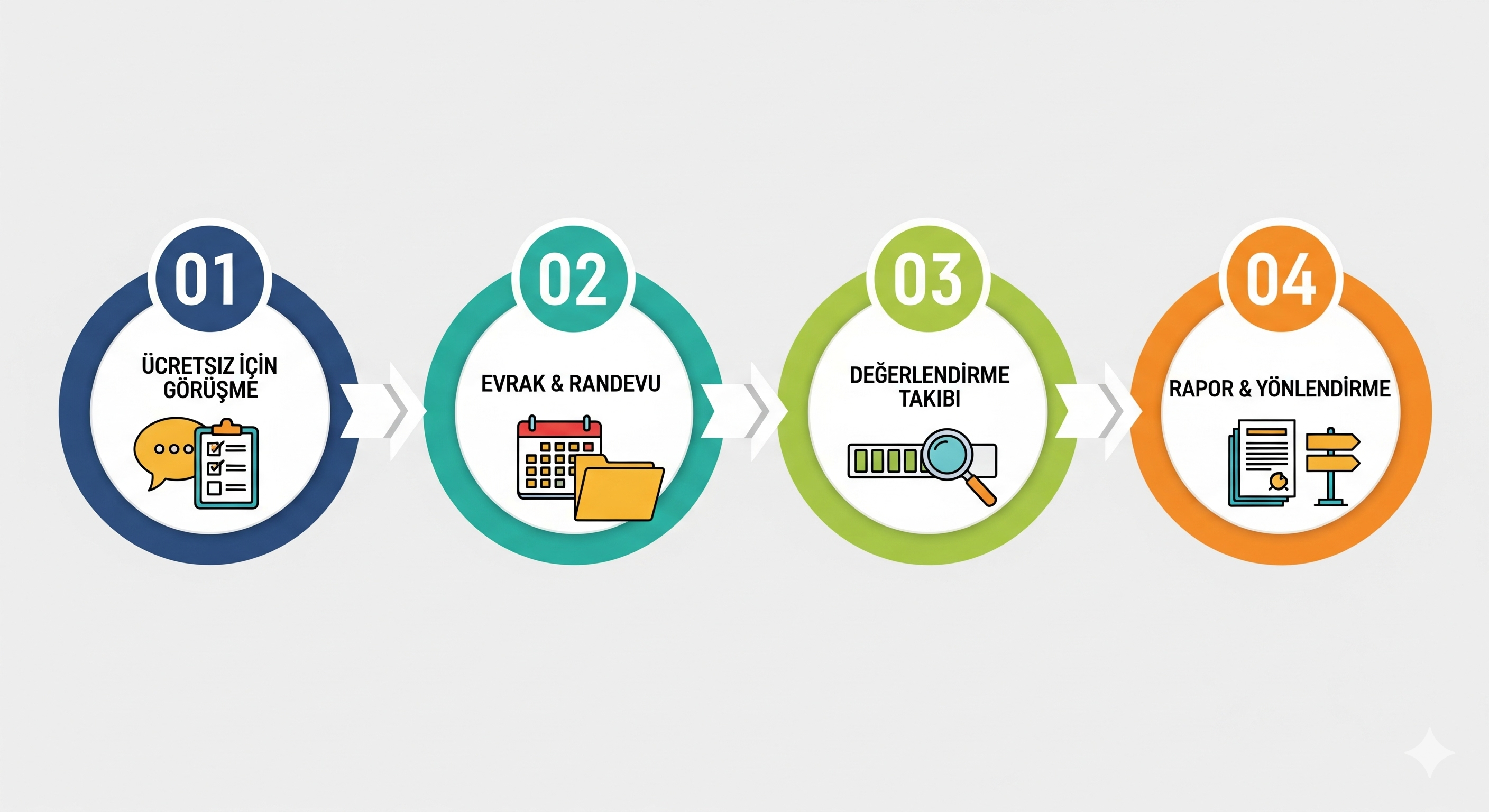 Doğru evrak listesi, ön kontrol ve başvuru hazırlığı. Hataları en başta engelleriz.